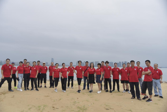 2021年4月29日下午,教辅单位联合第一党总支27名职工来到新南门合影留念,从新南门出发沿海边栈道步行前往恒大美丽沙。