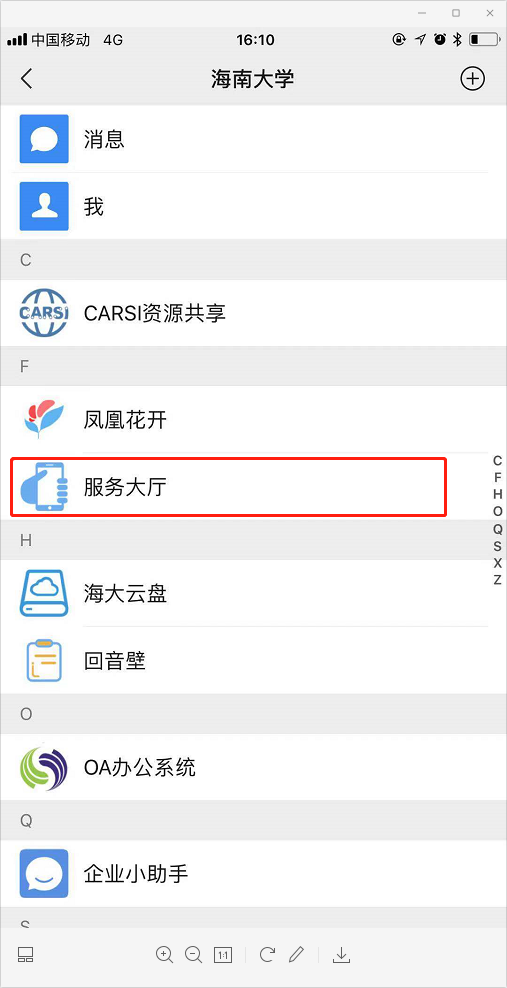(如未关注,请查看关注流程:https://qywx.hainanu.edu.cn/Auth/doc/guide/index.html)