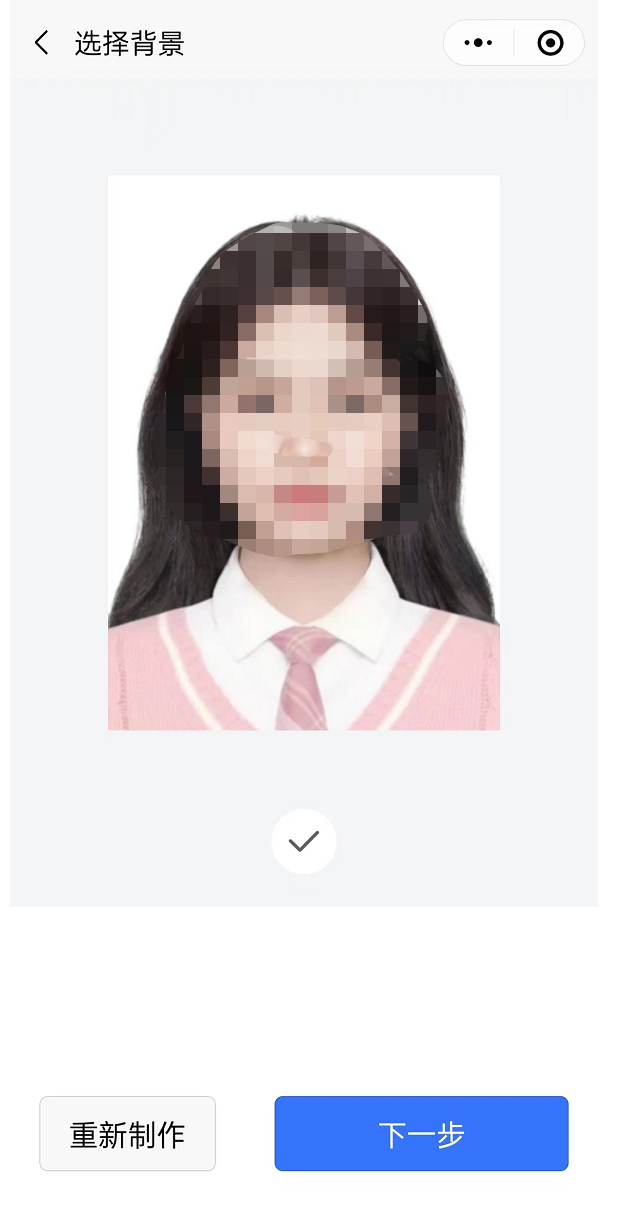 选择从相册选择照片,可以打开本机的相册,从相册中选择好要上传的证件照之后,点击【完成】会生成要提交的证件照,如果对制作的照片不满意可以选择【重新制作】