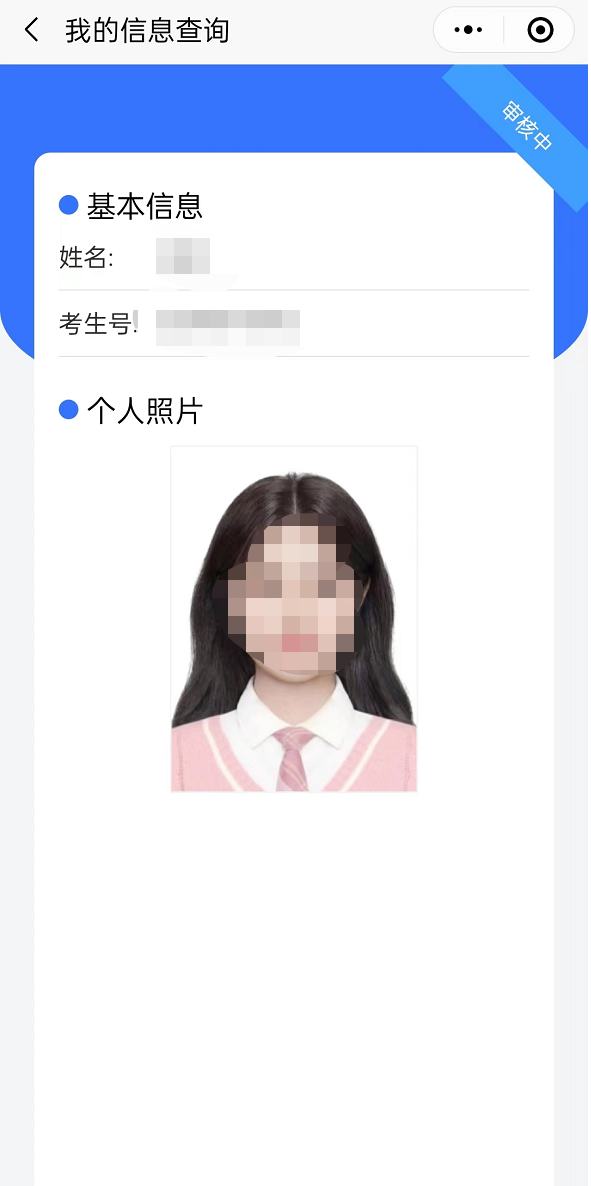 提交照片后可以在【我的信息查询】中查看提交照片的审核状态,审核不通过的需要重新采集照片,审核通过的不可以再次提交照片