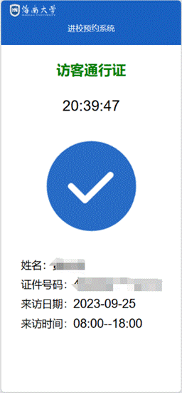 (四)校外人员提交预约后,具有审核权限的保卫处工作人员进行审核,预约者可在预约列表中查看审核状态;审核通过者方可在预约进校时段凭“通行证”进出校门。