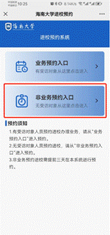 (二)在进校预约系统界面,非业务进校预约选择“非业务预约入口”。