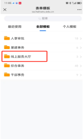 OA系统界面左菜单栏选择“线上服务大厅”。